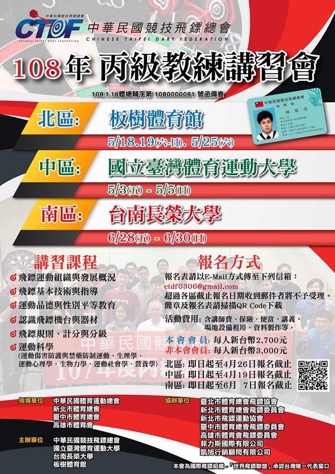 中華民國競技飛鏢總會108年丙級教練講習會課程,內容非常豐富!