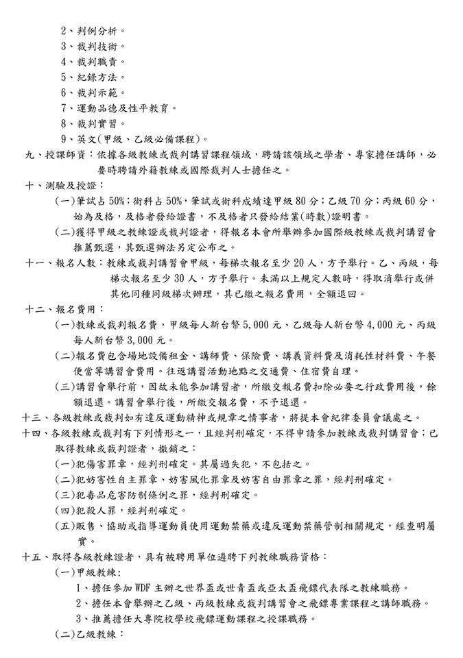 參照教育部頒佈之「特定體育團體建立運動教練資格檢定及管理辦法」規定,