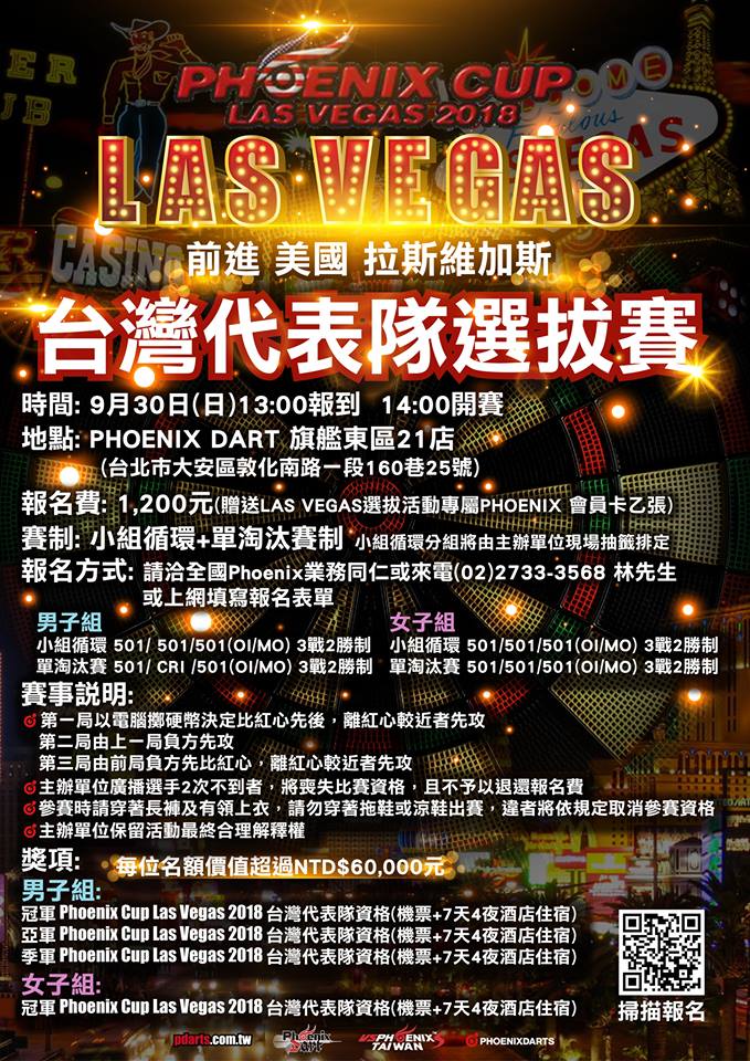4位3男1女選手將於10/19~21代表台灣前往美國參加拉斯維加斯飛鏢公開賽!!